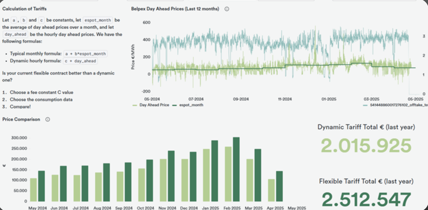 A non-dynamic contract now carries more risk for suppliers than before. Today, this risk is being passed on more heavily to their customers. By switching to a dynamic contract, most companies can achieve significant savings. Initial results among our clients show a clear trend: by optimizing contracted capacity and applying conservative peak shaving, companies achieve average cost savings of 10%, with amounts reaching up to €50,000 per year.